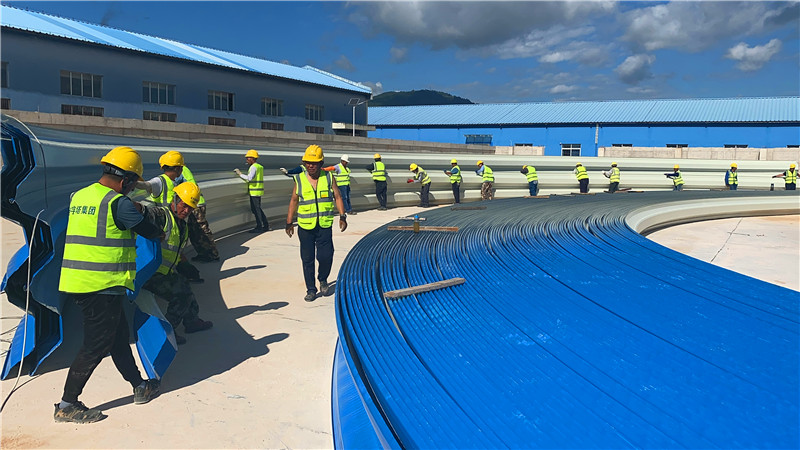 項目完工后,建設單位與業主單位聯合進行驗收,各項指標符合合同要求,施工結果獲得認可。拱形屋蓋安裝嚴密、排水順暢、結構牢固,適應華新水泥料棚嚴苛的工業使用環境。