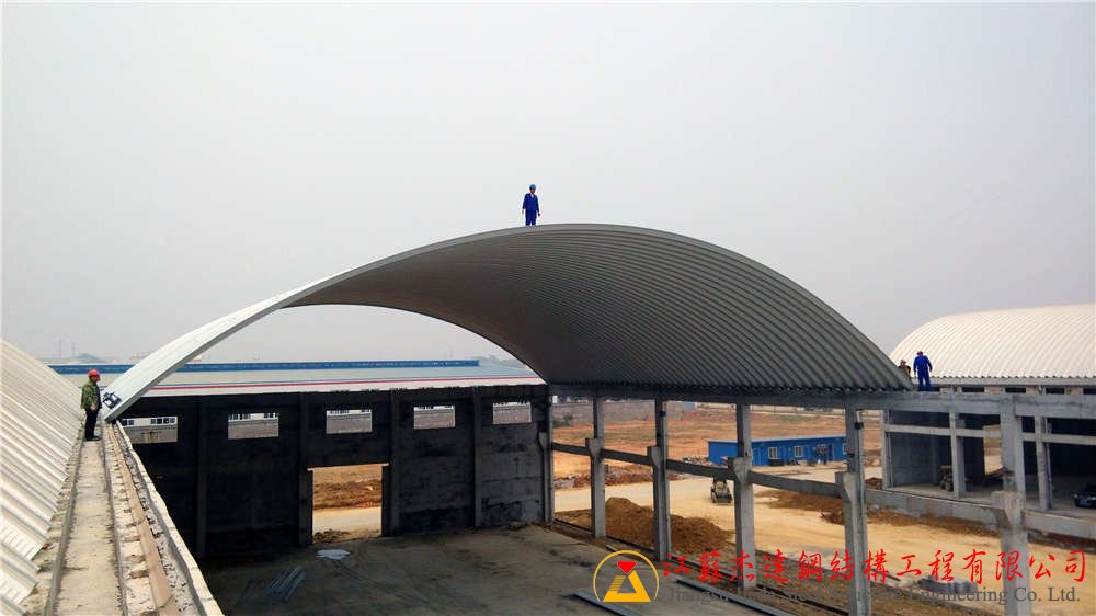 拱形屋頂在工業(yè)建筑中較為常見,尤其適用于連接兩棟磚混結(jié)構(gòu)廠房之間的過道部分,既能實現(xiàn)空間覆蓋,也方便施工和維護。