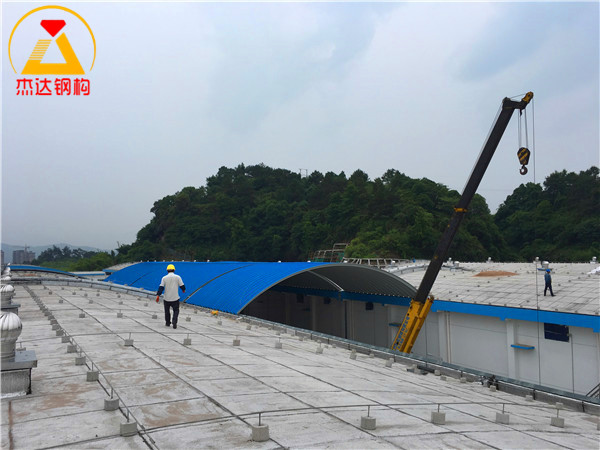 托板部分采用優(yōu)質(zhì)鋼材,經(jīng)過精密焊接工藝組裝,保證連接處的強(qiáng)度與耐久性。拱形屋頂?shù)脑O(shè)計不僅提升了建筑的整體美觀性,同時也增強(qiáng)了屋面的排水能力和抗風(fēng)性能。