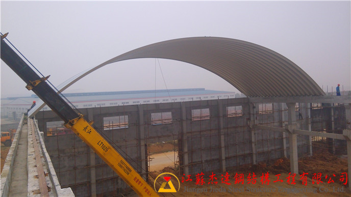 江蘇杰達鋼結構工程有限公司專注于大跨度拱形屋頂的施工,跨度范圍在25米至38米之間,致力于打造結構穩固、設計合理的鋼結構屋頂,滿足不同建筑需求。