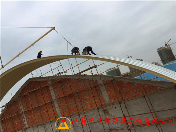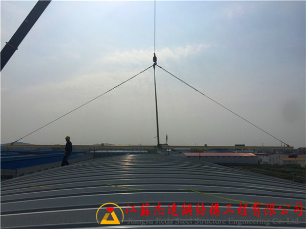下為江蘇杰達鋼結構工程有限公司在安徽安天食品集團拱形屋頂安裝施工過程中的施工日記。