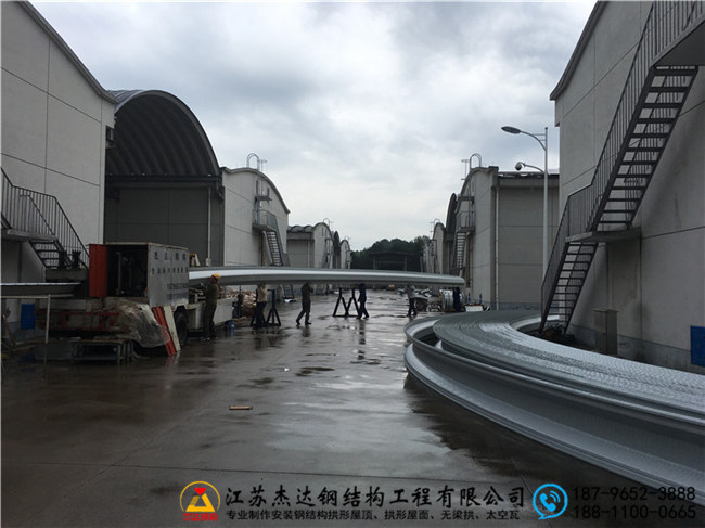 設備出板環節是施工中的重要環節,所有部件均經過嚴格檢測。組裝過程采用科學流程,保證瓦片精準拼接,提升整體結構穩定性。無梁拱設計提升了屋頂的承重能力,且減輕自重,利于長期使用。