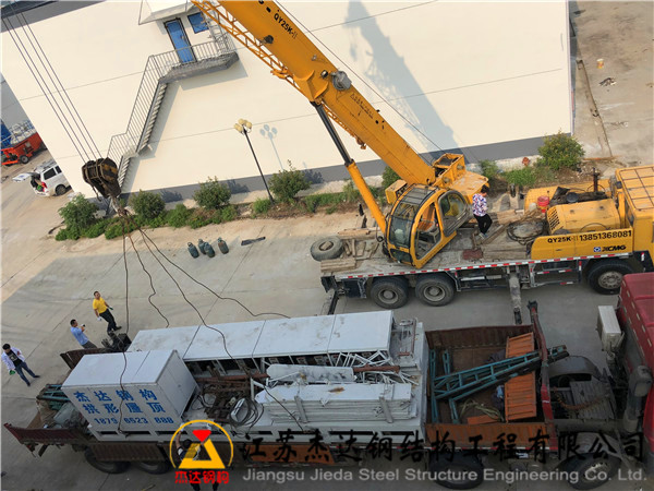 施工人員對拱形屋頂進行了專業安裝,現場圖顯示了拱形屋頂的完整結構與角鋼桁架的布局,體現了嚴謹的施工標準和細致的工藝。