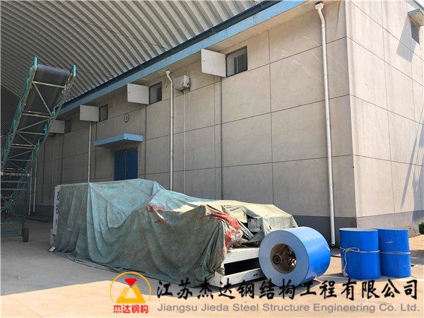 該項目位于江蘇省宿遷市第二糧食儲備庫,原有兩棟拱形屋頂倉間罩棚由湖南某企業建設,拱高為跨度的四分之一,采用1.0毫米厚的鋼板。由于施工過程中存在偷工減料現象,導致建筑質量不達標,屋頂壽命較短,且部分區域已被臺風破壞,半棟屋頂垮塌。現由江蘇杰達鋼結構工程有限公司負責翻建工作,采用臺灣尚興鋼鐵廠生產的TS280GD-Z彩涂卷,板厚提升至1.2毫米,以增強結構的耐用性和穩定性。