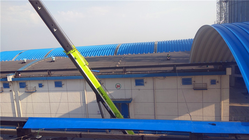 施工過程中,杰達鋼構使用第五號拱形屋頂壓型設備連夜趕赴施工現(xiàn)場,確保施工進度。